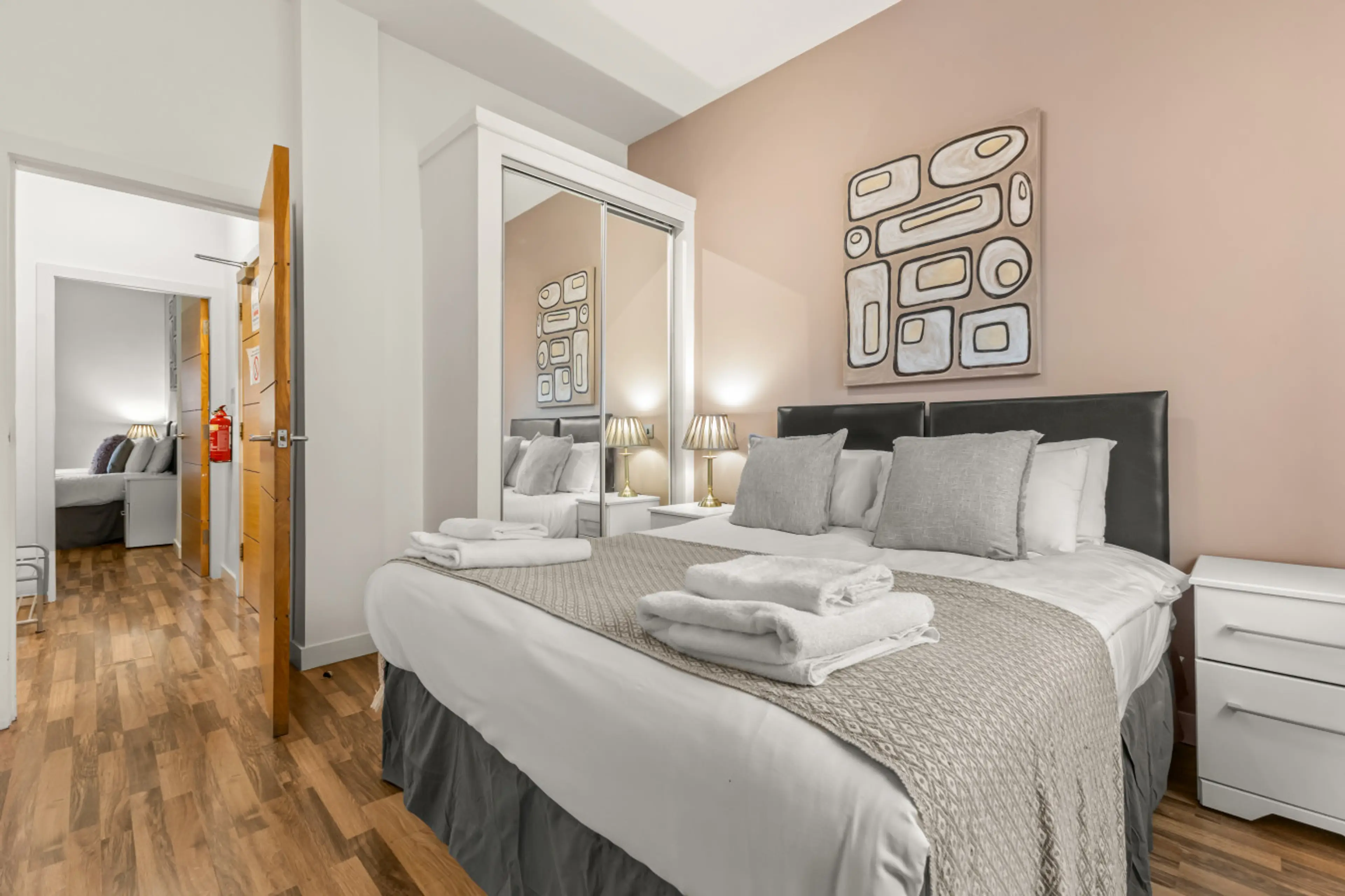 Welcome to your stylish city escape in the heart of Manchester. This modern apartment is perfectly located, offering the ideal base for both leisure and business stays. ๐ Bedrooms & Sleeping Arrangements Master Bedroom: King-size bed with ensuite bathroom, fresh linen, and mirrored storage. Seco...